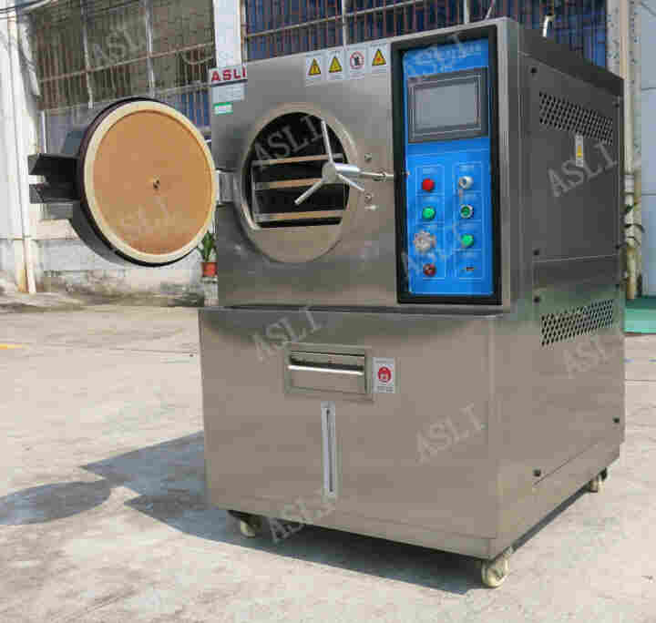 艾思荔HAST高加速寿命试验机(骆小姐/QQ:2850687967)内外箱均采用304不锈钢板,圆型内箱,不锈钢圆型试验内箱结构,符合工业安全容器标准,可防止试验中结露滴水设计。HAST高加速寿命试验机圆幅内衬,不锈钢圆幅型内衬设计,可避免蒸气潜热直接冲击试品。精密设计,气密性良好,耗水量少,每次加水可连续200h。自动门禁,圆型门自动温度与压力检知安全门禁锁定控制,安全门把设计,箱内有大于常压时测试们会被反压保护。