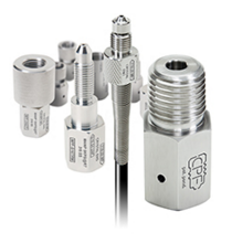 CPF 接头和软管系列是的快速测试压力接头系列,适用于校准和测试应用场合 —— 其设计重点在于安全。Crystal 压力接头 (CPF) 的高工作压力达 10000 psi / 1000 bar,上面带有一个安全泄水孔,可以让您避免意外与加压系统断开连接。该孔也可以用作泄放点。 CRYSTAL软管