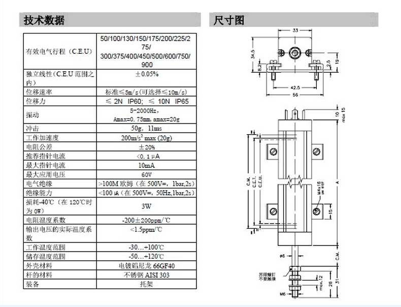GEFRAN【LT】拉杆式位移传感器又称电子尺、电阻尺等。GEFRAN LT拉杆式直线位移传感器,采用内部碳膜电阻涂层,配合电刷滑动实现电阻变化,从而转换为位移量。GEFRAN LT直线位移传感器采用拉杆式设计,配合万向节安装。LT拉杆式位移传感器独立线性度为±0.5%FS,量程从50~900mm可选。位移速度小于5m/s、壳体材料使用不锈钢材质、大供电电压可达60VDC、电阻公差±20%、如有任何疑问欢迎联系我们的技术团队。