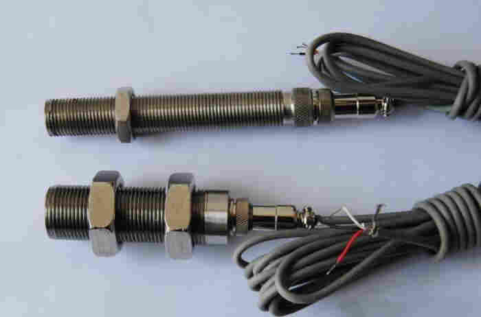 转速探头内装磁钢,当磁芯端面近处有转动的导磁齿轮、带孔(或槽)圆盘(或轴)等时,由于磁路中磁阻的变化,传感器内线圈即能感应输出相应的交流电压信号,输出近似正弦波电信号传感器具有:体积小、结实可靠、寿命长、不需电源和润滑油等优点,与转速监控仪表均可配用。