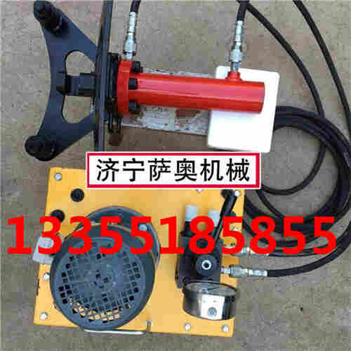 弯曲钢材时,先关紧油路开关,扳动活动手柄,使柱塞、泵开始工作,使油压推动大活塞推进刀轴