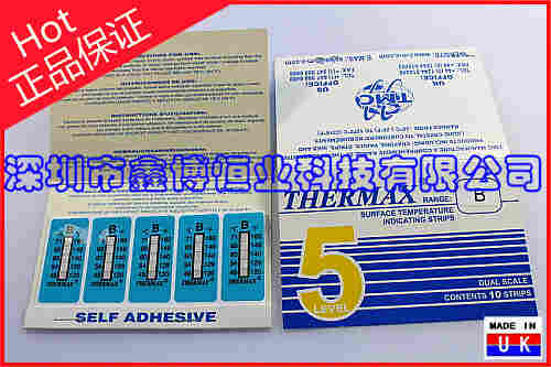 英国"温度美(TMC)"牌Thermax系列试温腊片采用温度测量的新概念,在小型贴纸上有一列方格或圆点,代表不同的温度值,当温度上升至该温度点时,方格会转变成黑色,