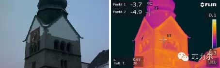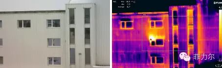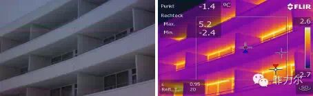 检测较高的多层建筑时,可以在十层的高度拍摄具有高辨识度的正面热图像,因为窗户玻璃对于红外热像仪来说是不透明的。