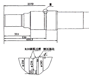 车轴是机车机械走行部关键部件,在运用中起着向钢轨传递静载荷和牵引力、制动力的作用,另外还刚性承受来自钢轨接头、道岔、线路不平的垂直和水平作用力,是一个受力复杂、工作条件恶劣的部件。SS4改进型电力机车是我国铁路重载运输的主型机车,车轮结构有分体车轮和整体车轮。我国早期生产的机车车轮都是采用带轮箍的组合式分体车轮,这种车轮大的隐患就是其一旦发生轮箍崩裂或弛缓,极易造成机车脱线,甚至列车颠覆事故.后果不堪设想。随着列车速度的提高,这种隐患的危险性更加突出,为避免该隐患,铁道部在运装技验(2000)269号《加强机车走行部管理意见》文件中规定“机车要逐步合理地采用整体辗钢车轮,从2001年起,新造干线客货运机车全部采用整体车轮”。所以2001年以后生产的SS4改进型电力机车车轮都采用了整体车轮,车轴结构也随之发生了改变,齿轮心直接压装在车轴上,压装轮心和齿轮心的车轴直径分别是238 mm、245 mm,期间没有采用圆弧过渡而是采用了直接过渡,只在压装齿轮心变径处加工了5 mm的倒角,这个部位作为传递牵引力转矩的连接部位,成为交变应力的集中区,同时轮心与车轴、传动齿轮与车轴组装均方过盈配合,2个组装应力也集中在这个部位上,机车长期重载运用中使车轴产生疲劳裂纹。产生裂纹根本原因是车轴设计不合理,在压装部位没有采用圆弧过渡。