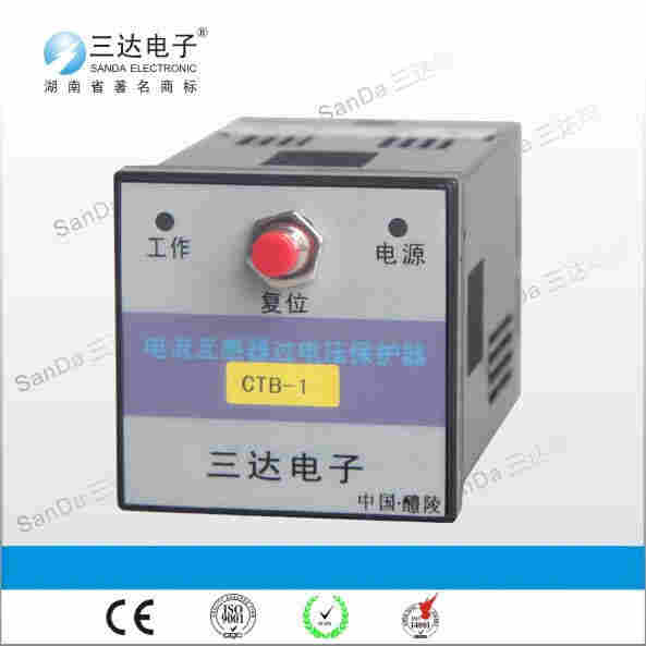 电流互感器CT二次过电压保护器主要用于各种CT二次侧的异常过电压保护。CT二次过电压保护器固接于CT二次绕组两端,正常运行时泄漏电流极小,呈高阻状态;当CT二次回路开路或一次绕组出现异常过流时,二次绕组产生的过电压使保护器迅速动作将CT二次侧短路,面板上自动显示故障部位,并有无源接点信号输出。故障排除后,按手动复位按钮(或CTB自动复位),电路恢复原状态后又可重新投入正常运行。