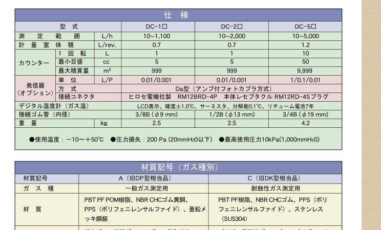 DC系列干式流量计耐腐蚀型(+1.8KPa U型管):DC-1C-M,DC-2C-M,DC-5C-M。