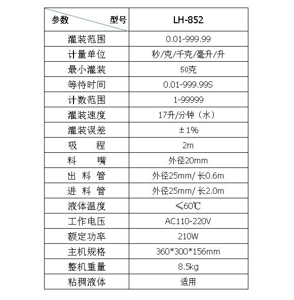 5 单点校准:同行产品是灌重量就在该重量附近校准,更换灌装量时需要重新校准, 我们的产品一旦校准,所有重量都能准确灌装!