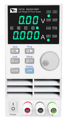 IT6700系列是经济的高性能数控电源,拥有业界高功率比,并具有宽广的电压电流使用率,一台电源可替代多种型号,大大提高了应用范围。以IT6720为例,100W的容量,可输出高60V与5A,并且还可以自动控制电压和电流的变化率,功率比达到三倍之多。一台机器可替代以往60V×1.6A / 32V×3A / 20V×5A三种机型,减少重复投资,大幅度节省成本和空间,在有限的预算下提供无限的满意,让客户轻松的替代传统数显电源。