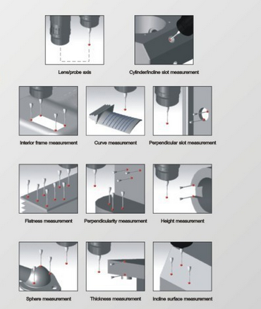 AC-OPTIC融入三坐标测量功能,可灵活的控制接触式测头对点、直线、圆、椭圆、平面、圆柱、圆锥、球、方槽、圆槽、圆环、曲线、曲面等到各种三维几何元素进行测量及相关形位公差评定