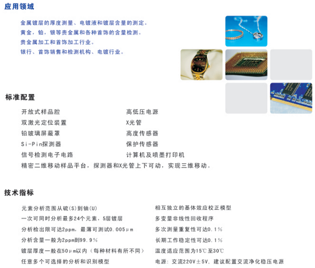 元素分析范围从硫(S)到铀(U)中间的任意金属镀层
