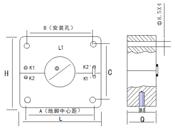 一次由互感器正面“L1(或P1)”侧穿入,二次侧为“K1(或S1)”等端子 |