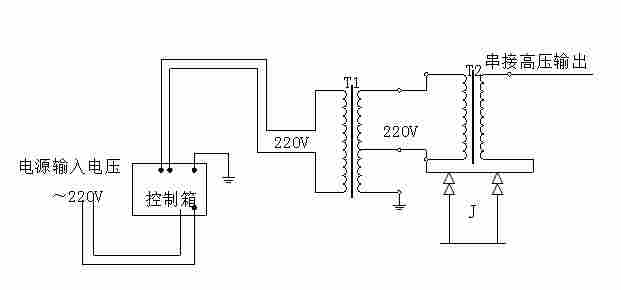 4、用本系列产品组成串级高压试验时,就特别注意检查第2、 3级的变压器本体及绝缘支架的状况、连接线的正确性,整个系统的保护接地与保护接地状况。
