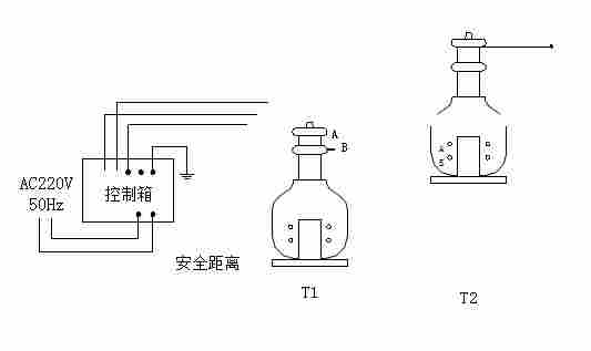 (6)如需保护被测产品免被击穿,可先在高压侧连续接保护球隙调整保护球放电电压为试验电压的1.15倍左右。