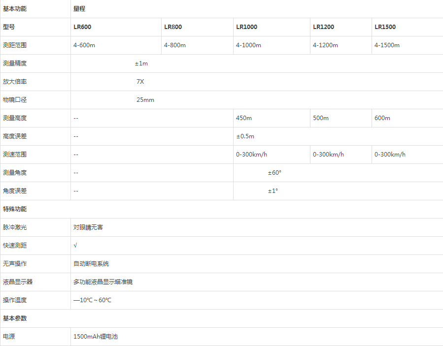 LR系列测距望远镜,优利德内置锂电池供电,置入式锂电池待机时间长,循环使用长,安全性高。综合望远镜、测光测距和测角功能,测量精度±1Y 、无声操作,自动断电系统,采用脉冲激光,发射功率小,对眼睛安全,屈光度调节功能,防水防尘2级。晒纹耐用不易磨损 使用寿命长,产品表面的美观和。采用高清镀 高清镜片,高性能光学产生高清的图像,在柔光条件下也能看到清晰图像。6倍光学观察系统,的激光技术 测量更,精密的工艺,瞬间测量,误差低至±1m。广泛应用于:狩猎、航海、林业测绘、电力工业、遗址探索、高尔夫球场、户外勘探、建筑施工勘测、动物调查等领域。