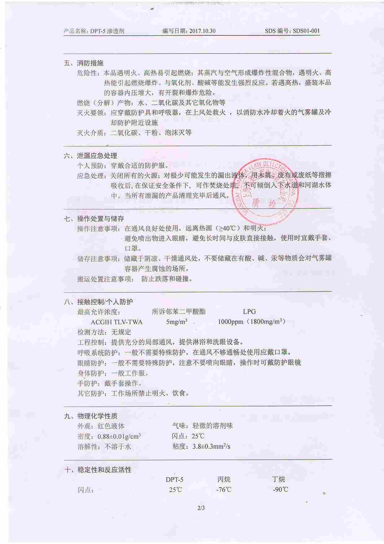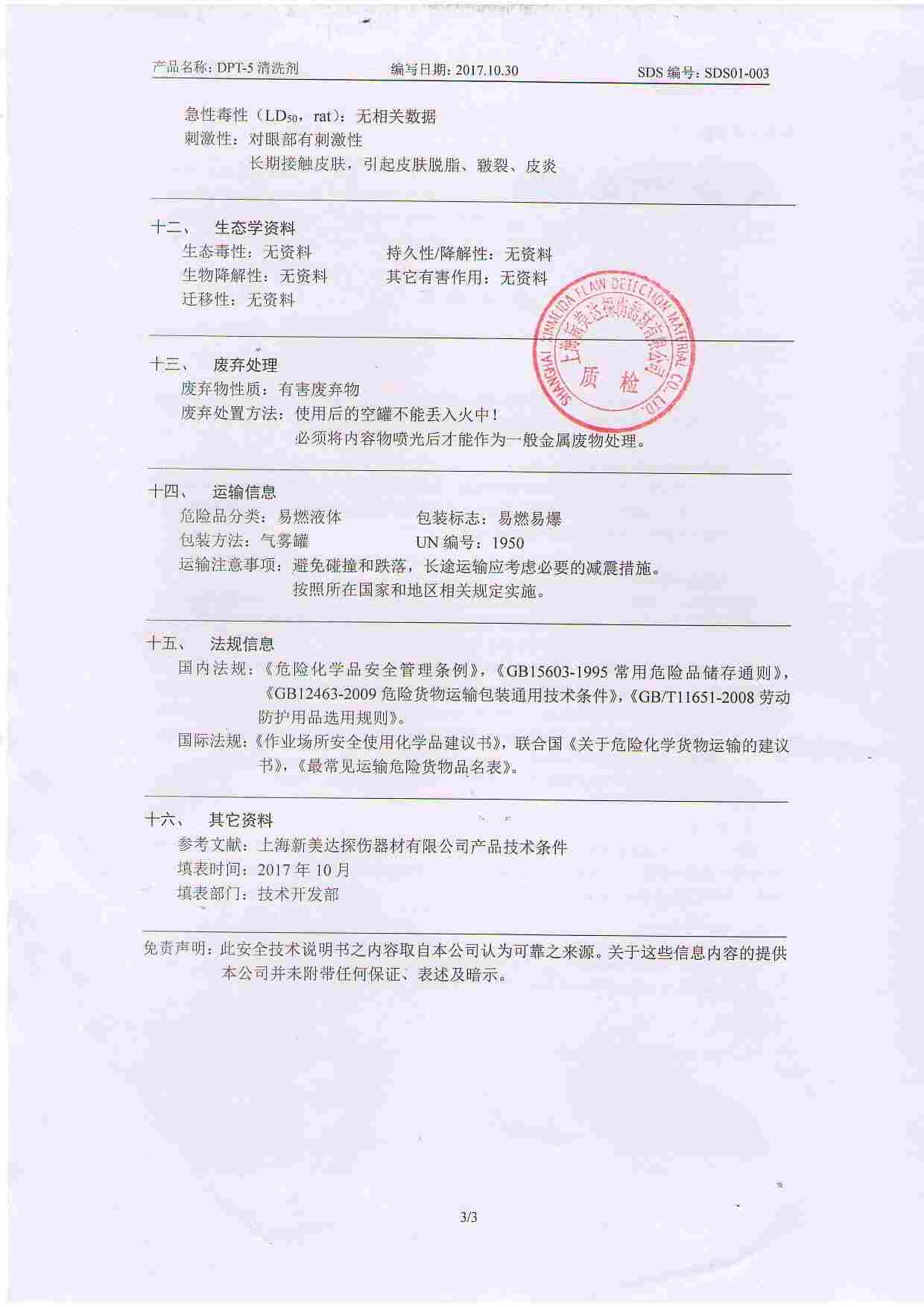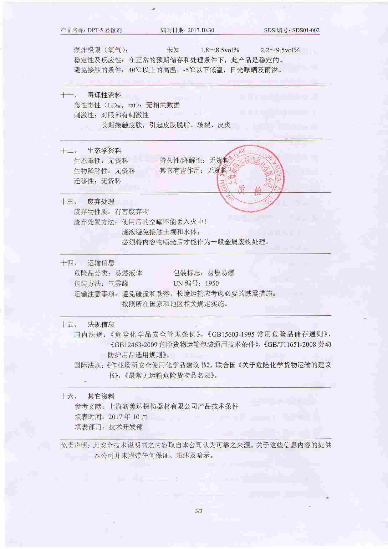 上海新美达DPT-5着色渗透探伤试剂安全材料表:(渗透试剂)