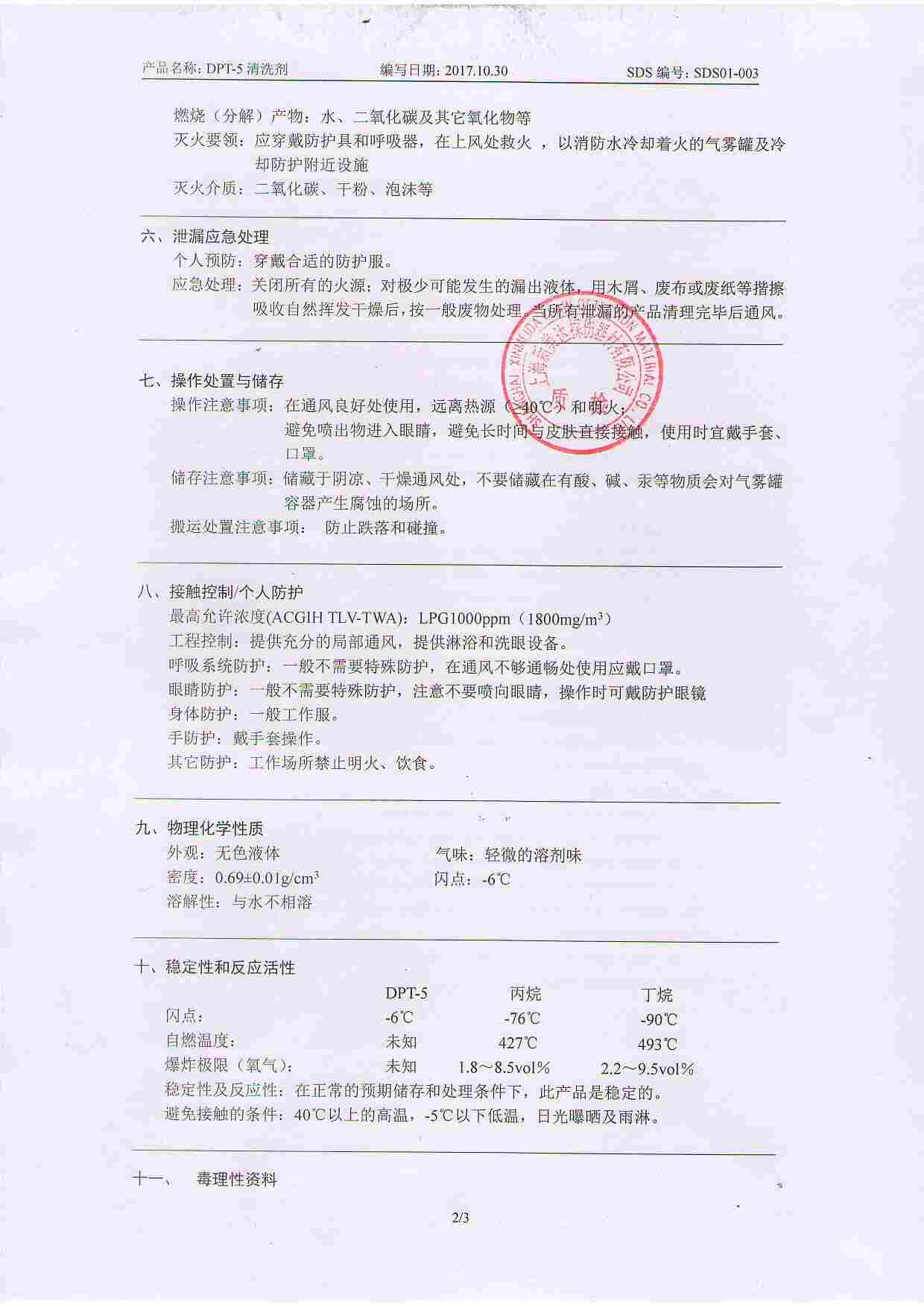 上海新美达DPT-5着色渗透探伤试剂安全材料表:(清洗试剂)