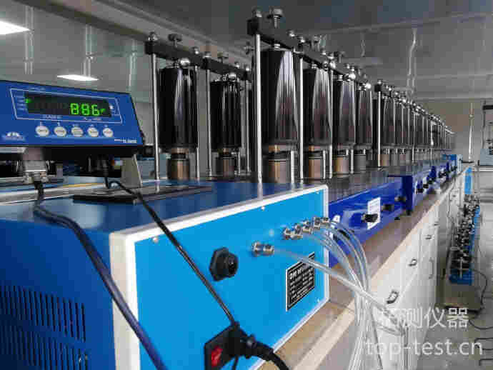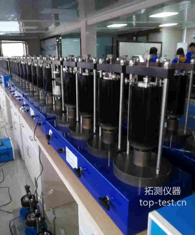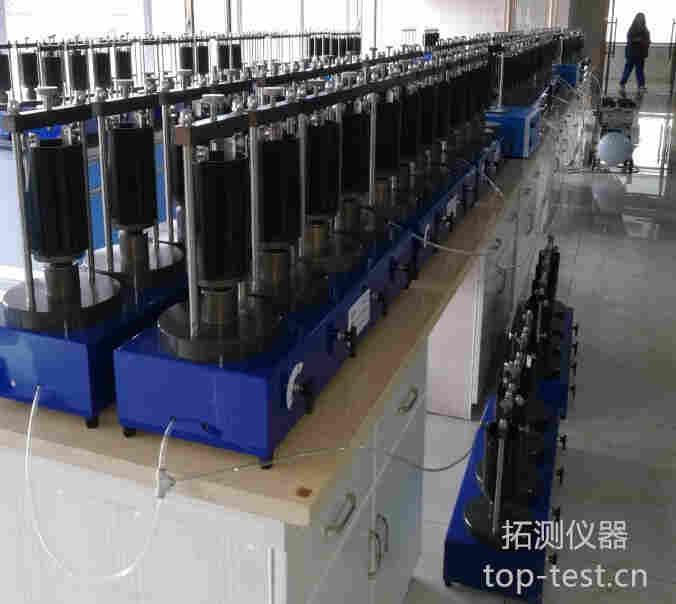 智能直剪预压仪对土样施加垂直压力,使土样排水固稳后为直剪试验而设计的压力仪。该仪器在原有杠杆预压仪的基础上进行改进,通过高精度气压调节装置为土样施加垂直压力,一次可同时对0-32个试件进行施压,施压速度快,压力稳定,减少了人工搬取砝码的操作,极大的释放劳动力。
