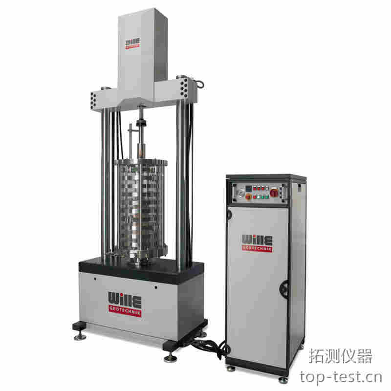 此套德国Wille大型动三轴试验系统由刚性2-柱式加载架、动态作动器、多通道控制系统组成,分辨率为20 bit,可施加动态轴向荷载、围压、反压以及孔隙气压(可选)。