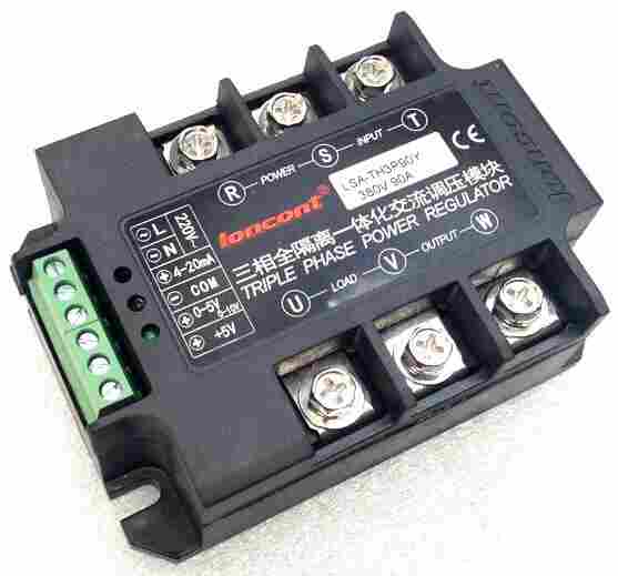 电力调整器与带0-5V、4-20mA的智能PID调节器或PLC配套使用;主要用与工业电炉的加热控制、大型风机水泵软启动节能运行控制、。负载类型可以是三相阻性负载、三相感性负载及三相变压器负载;三相负载可以是中心接地负载、中心不接地负载、内三角形负载及外三角形负载。