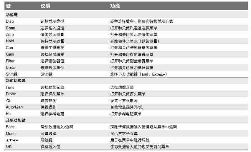 仪器的按键是分类布置的,包括九个功能键、一个12键的数字键盘、导航键、一个OK(确定)键、四个软键以及单独的 菜单和后退键。功能键和软键可组合用于访问仪器内的数据 和/或功能。