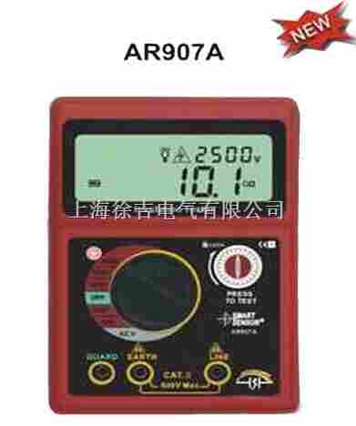 AR907A 绝缘电阻测试仪是上海徐吉电气有限公司专生产销售AR907A 绝缘电阻测试仪,AR907A 绝缘电阻测试仪于绝缘电阻、大电阻的测量;广泛适用于发电机马达、电源变压器、配线、电器和电缆的绝缘电阻的检测。:AR907A绝缘电阻测试仪的设计符合IEC61010-031安全标准;防尘及防水构造符合IEC61010-1标准,即使测量在极差的天气情况下也能使用;大屏幕LCD显示器和背光;带电路线警告标志和蜂鸣警告;自动放电功能,使操作更加安全;低电量指示及自动关机功能,10分钟后无任何操作仪器自动关机。