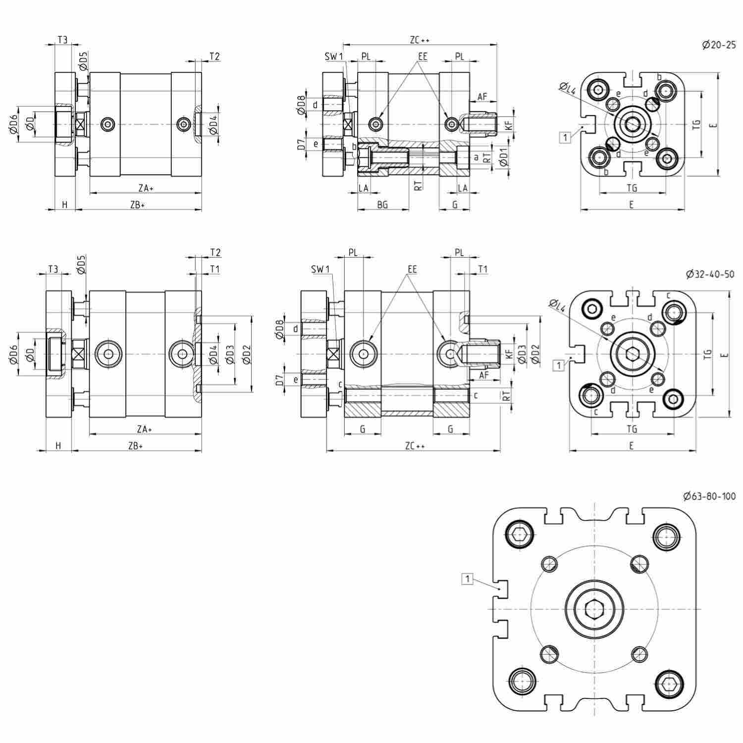 缸径 32 - 40 - 50 - 63 = 5 ÷ 400 mm