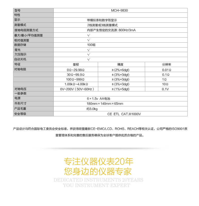 MCH-9830模摇表数字接地电阻测试仪 模拟条数字双显多功能测试仪