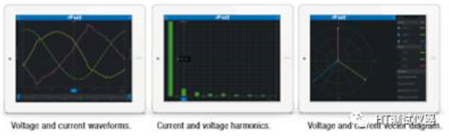 wifi连接功能让你直接在智能手机、平板电脑或电脑上显示波形、矢量图、谐波柱状和每相的电气参数。