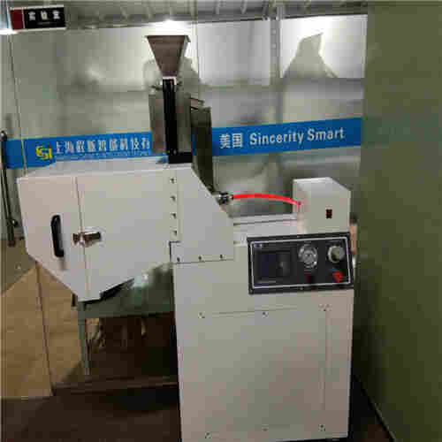 角度可调碰撞室、3D碰撞室、喷枪、气动震动进料口、收集箱、电控柜、PLC显示屏