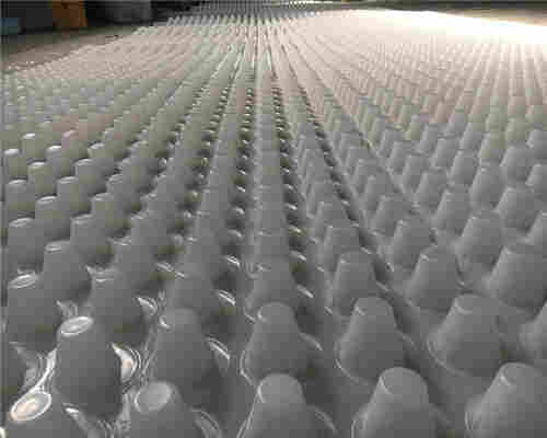仅在小型临时工程中才允许运用裸打法,但这时也有必要保证在打设时不会导致ped14高分子防护排水异型片破损。依据经历判别,当颗粒细且均匀,地基土强度小于10kPa。地下室排水使用带支点的整体ped14高分子防护排水异型片系统与墙体、地上之间的空地,做出持久的中空层即导排水层,构成排水通路进行疏排水、防潮。可将地下室渗水引流至排水沟、排水管等终将渗水引入集水坑,经过水泵排出,到达地下室外墙面及地上无渗点、水印的目的,确保地下室干爽。.做好ped14高分子防护排水异型片修剪机械的保养工作。