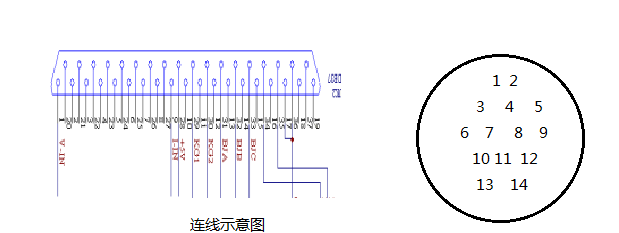 5、通讯接口两条线,一条固定连线连接到计算机通讯串口COM1;另外一条连接线主机是14针航空插头,计算机端为扁型DB37芯插头 。
