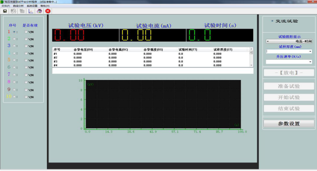 (I)连续升压(Short Time):试样电压从零开始以选择的升压速率匀速升压,直到试样击穿为止,击穿电压为击穿瞬间的电压值。