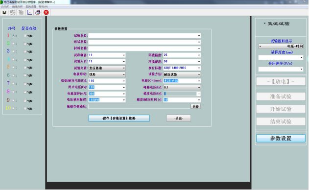 (4)根据试验要求输入参数,然后点击“保存【参数设置】数据”按钮,出现如下提示后,点击确定。