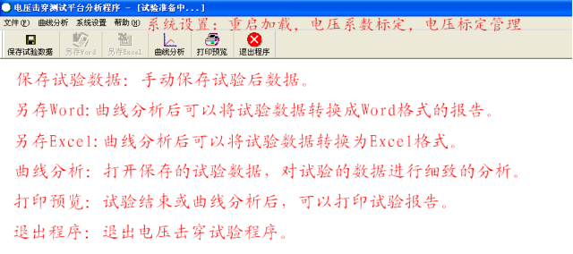 ②本仪器每次试验结果自动保存在计算机E盘下试验数据文件夹中,文件存储方式为试验时的年月日时分秒为文件名,如果想要保存为其它文件名,请自己选择保存文件夹和命名方式;,每次启动系统如果E//盘下没有自动生成。