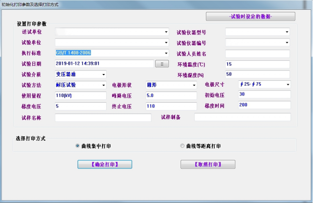 c. 执行标准:试验方法和条件所遵循的标准,设备执行的是ASTM D149-97 或者其它标准。
