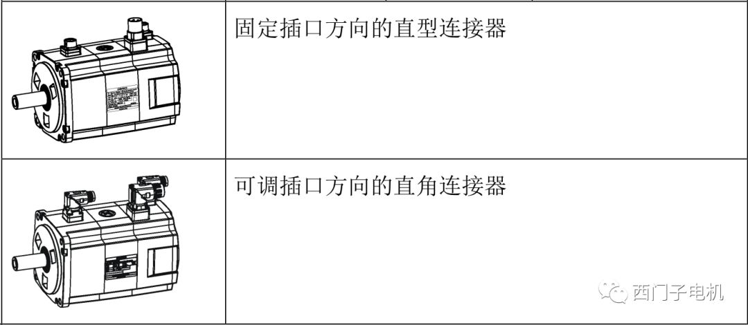 更新后的1FL6电机中,高惯量电机和轴高50mm的低惯量电机接线方式为可调插口方向的直角连接器。