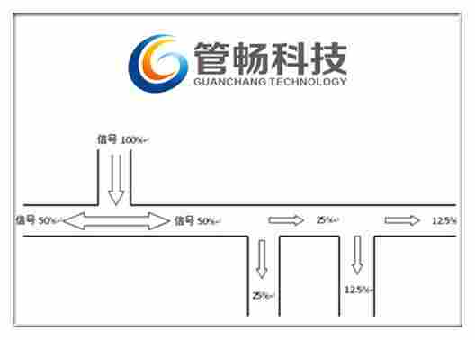 在燃气 PE 管道的敷设中,常有支线分出,在进行管道探测时,就需要确定出 PE 管道支线与主线连接的位置,即三通点的位置。声波信号在传输过程中遇到管道分支,信号强度会有所分散,且根据分支管道的口径不同能量分散的程度不同;如果分支过多会导致信号强度会骤减,造成传输距离缩短,增加了定位难度。