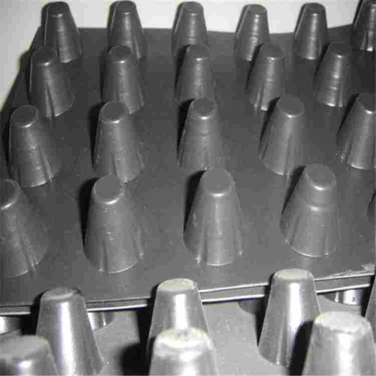HDPE排水板操纵涤纶短纤针刺地下室排水板加强土体的抗拉强度和抗变形本领,加强的不乱性,以改