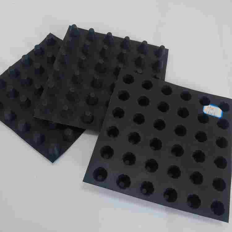双鸭山凹凸塑料排水板操纵涤纶短纤针刺地下室排水板加强土体的抗拉强度和抗变形本领,加强的不乱性,以改