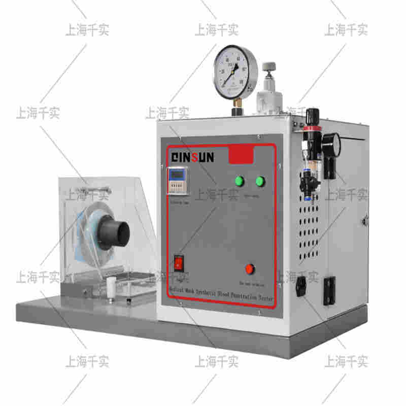 三:医用口罩抗合成血穿透试验仪/口罩合成血液穿透测试仪用于测定医用外科口罩、一次性医用口罩、民用口罩等日常防护口罩抵抗合成血液喷溅穿透性能,评估口罩对合成血液穿透的抵抗能力。测试过程: