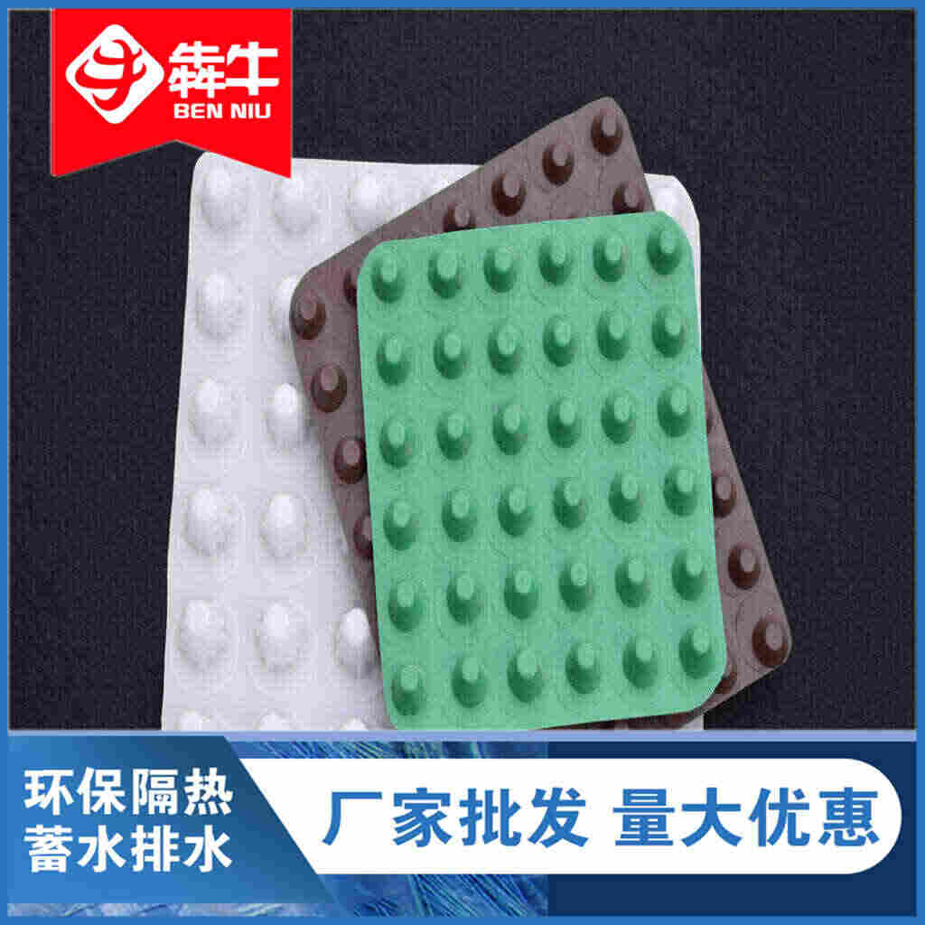 5、铺深圳市犇牛环保科技有限公司的排水板前有必要做好防水;要包管砖面有泄水斜度(通常为1%左右),斜度朝向地漏;铺完后有必要做至少24小时的闭水试验。其实相比之前用瓦砾来排水导水,现在用的排水板来排水,看似简单排水板铺设工程,里面细致的工作有很多。在排水板的选择上就要慎之又慎。 排水板在使用过程中,不仅仅要有它具备的功能,还要在使用质量,使用年限,使用效果上认真来选购。毕竟排水板是要一直使用几十年的材料,所以选对排水板的质量很重要,排水板的质量看在他的拉伸度,韧度等方面。还要看到他的环保性能,毕竟它埋在土中,对土地不能有污染。