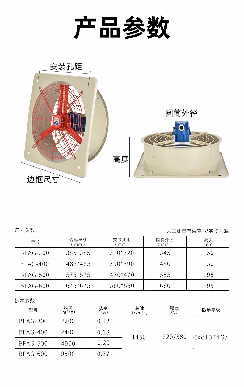 BFAG-300防爆轴流风机220V380V工业排风换气排烟扇方形负压风机 铜芯电机 三年质保 证书齐全