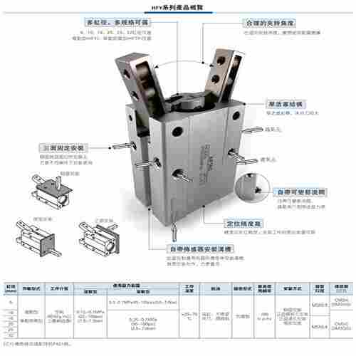 自帶固定基準準心孔本體附帶固定基莘準心孔,提升固定精度,提离重復拆裝定位一致性因突发情况而回路压力低下时,会发生夹持力减少及工件落下之可能,为避免伤害人体或损坏设备,必须加装防落下装置。平行型气动手指HFZ20B侧面安装型。平行型气动手指HFSZ20。平行型气动手指HFZ6。