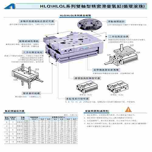 亚德客气缸:气缸负载大小由理论保持力(理论推力)决定,为确保气缸的正常使用,负载大小不可过下表规定的气缸理论保持力(理论推力);水平安装:径向负载不要过下表所示值。垂直安装:容许方向力矩不要过规定值,并根据负载与行程关系曲线确认几何数据注:建议负载与外部导向装置配套使用;气缸配管前,必须清除管内杂物,防止杂物进入气缸内气缸使用介质应经过40μm以上滤芯过滤后方可使用;气缸拆下长时间不使用,注意表面防锈,进排气口应加防尘堵塞帽,缸体外壁涂防锈油。