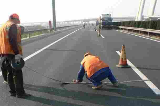 在公路预防性养护现场,两名养护工人正忙着对路面裂缝进行处治。工人手拿贴缝带,将贴缝带一面的隔离薄膜揭去,将贴缝带平整地贴在路面,并用脚踏实。据工人介绍,贴缝带和以前的灌缝胶相比,不仅施工便捷,还能立即实现通车,整个处治过程就像贴创可贴一样简单,而且在成本控制上,可大大节约使用资金。