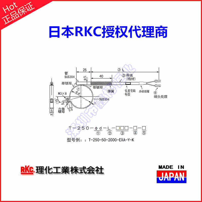 T-260/T-270Z测量树脂温度热电偶 日本RKC理化工业,用于测量树脂温度, T-260-2000-EXA-Y-K,T-270-2000-EXA-Y-K