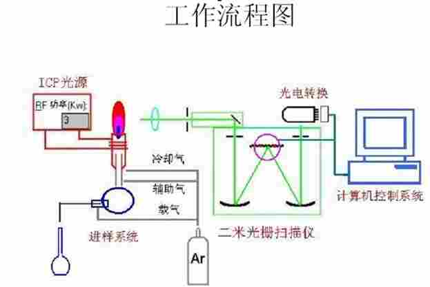 溶液进入等离子体光源中受激发,释放出光子,形成该元素的特性谱线,谱线的强度和蒸汽中原子的浓度成正比,进行定量测定。