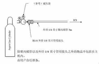 氩气瓶到仪器的距离应小于 5m,配管如下图所示,要注意氩气瓶的妥善放置,防止倾倒