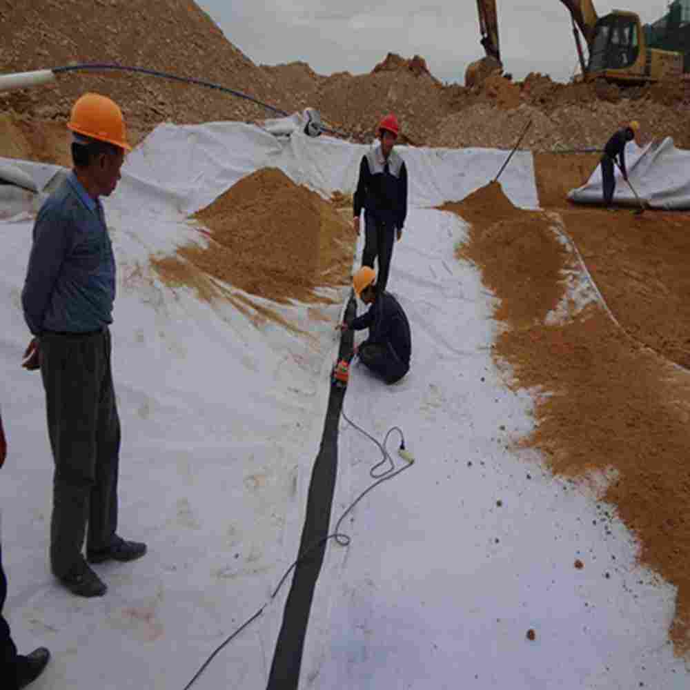 7. 土工膜铺设完成后,应尽量减少在膜面上行走、搬动工具等,凡能对防渗膜造成危害的物件,均不应放在膜上或携带在膜上行走,以免对膜造成意外损伤。