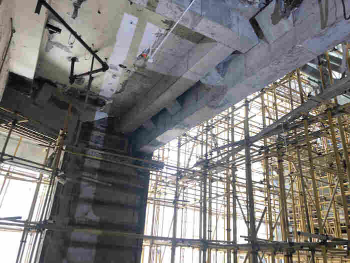 徐州厂房加固改造施工方案--房屋加固公司该法用于各种结构构件的局部加固处理时,其优点为构件加固后能恢复原貌,不改变原使用空间;缺点是剔除旧混凝土的工作量大,易伤及原构件的钢筋,且湿作业时间较长。